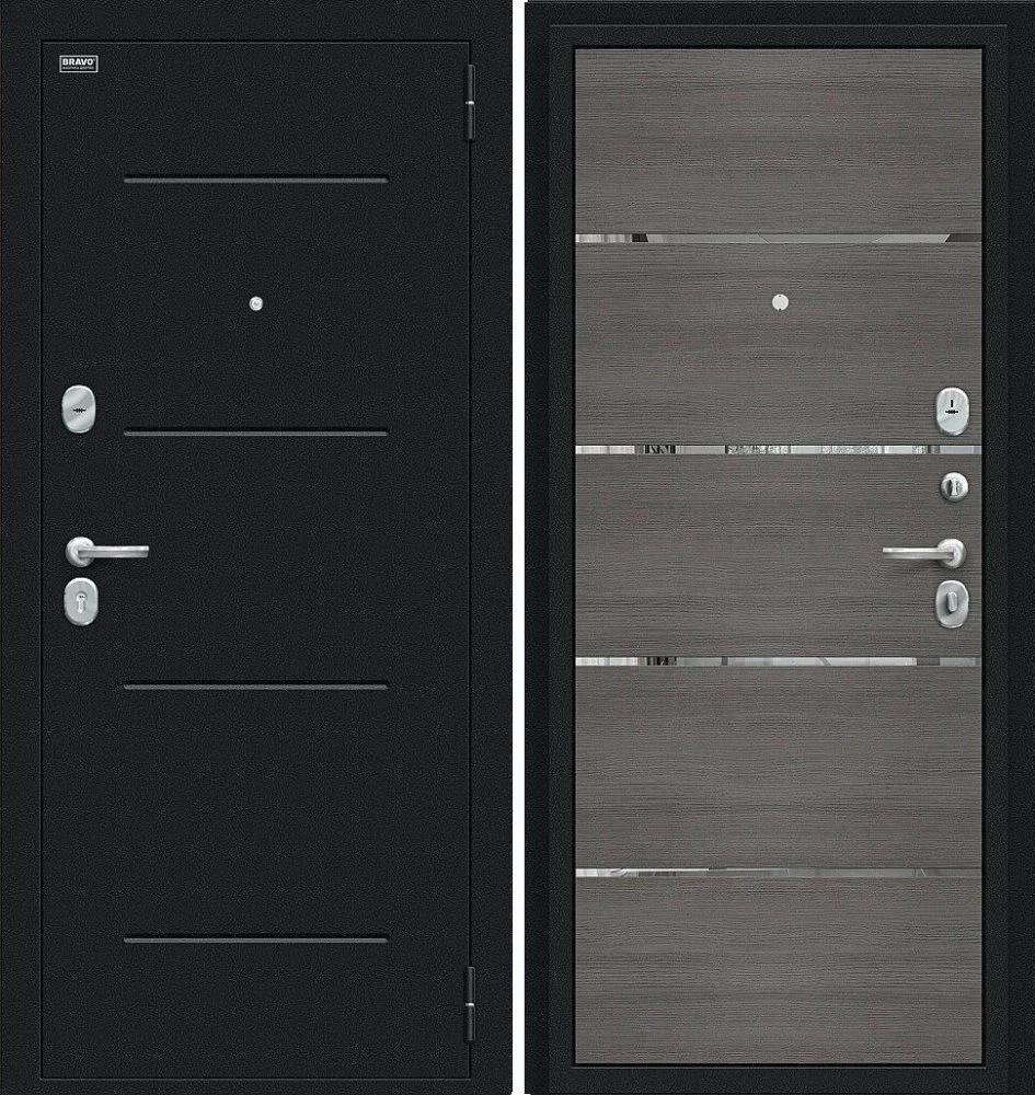 Надежная входная Дверь Браво Лайн Букле черное/Grey Melinga премиум класса по цене 32 170 руб. Большая толщина стали защитит от проникновения в ваш дом, квартиру или коттедж. Используется очень качественная фурнитура: замки, цилиндры, ручки, защелки. Покрытие и отделка двери изготовлено под внимательным контролем производителя. Дверь имеет долгий срок службы и гарантию.