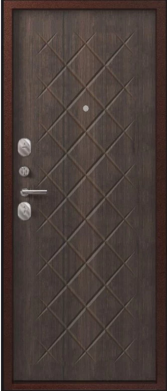 Надежная входная Дверь V-02 медь антик - венге премиум класса по цене 38 950 руб. Большая толщина стали защитит от проникновения в ваш дом, квартиру или коттедж. Используется очень качественная фурнитура: замки, цилиндры, ручки, защелки. Покрытие и отделка двери изготовлено под внимательным контролем производителя. Дверь имеет долгий срок службы и гарантию.