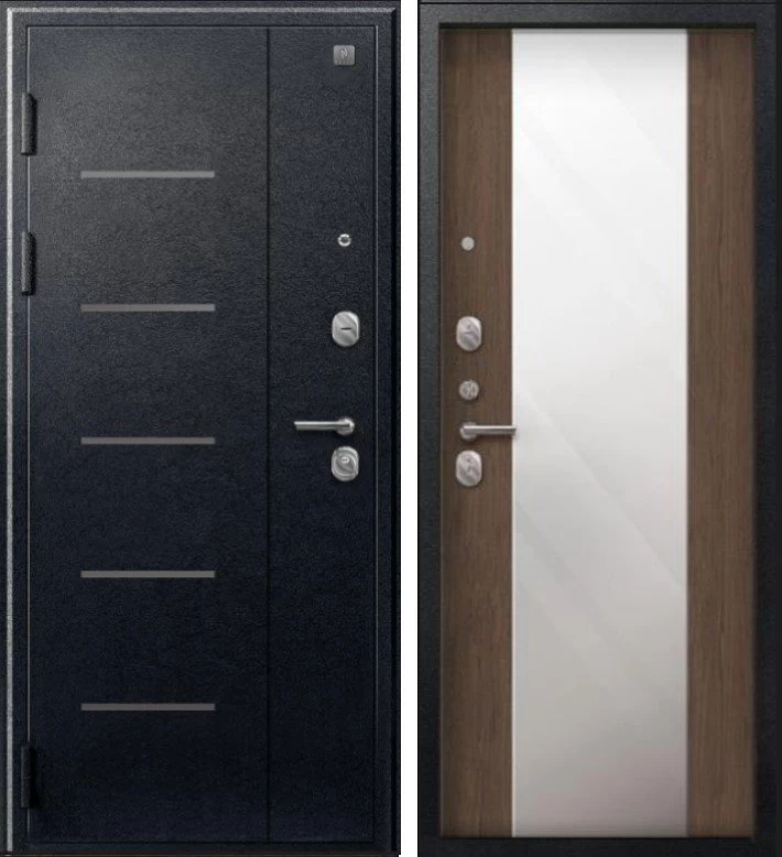 Надежная входная Дверь V-04 Черный муар - Миндаль Зеркало премиум класса по цене 44 700 руб. Большая толщина стали защитит от проникновения в ваш дом, квартиру или коттедж. Используется очень качественная фурнитура: замки, цилиндры, ручки, защелки. Покрытие и отделка двери изготовлено под внимательным контролем производителя. Дверь имеет долгий срок службы и гарантию.